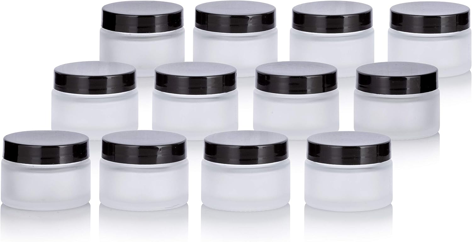 1 oz Frosted Clear Glass Jar with Black Foam Lined Lid (12 Pack)
