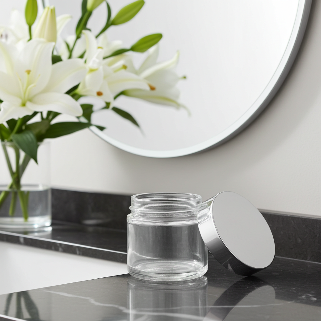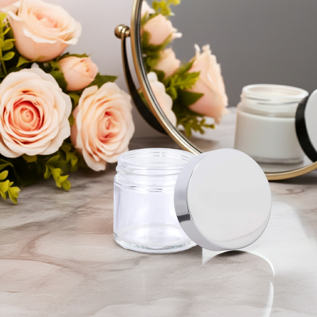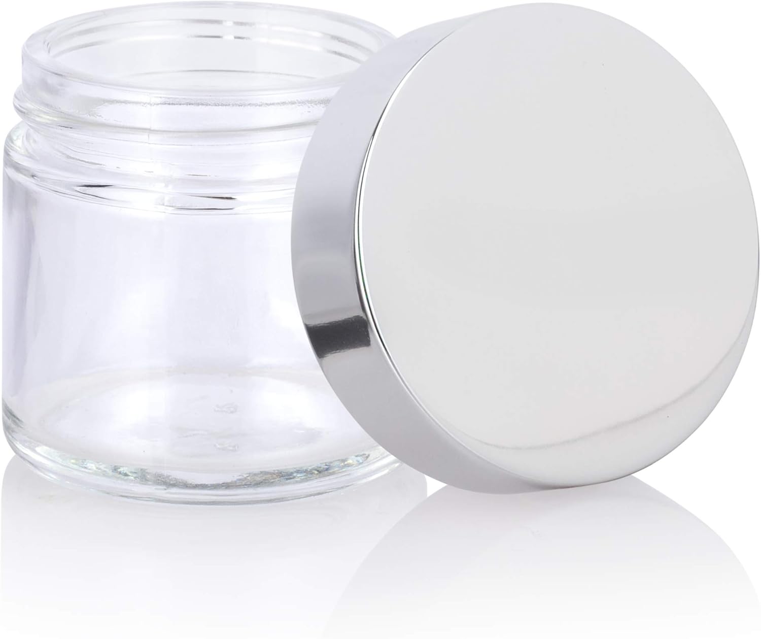 2 oz Clear Thick Glass Jar with with Silver Metal Overshell Lid (12 Pack)