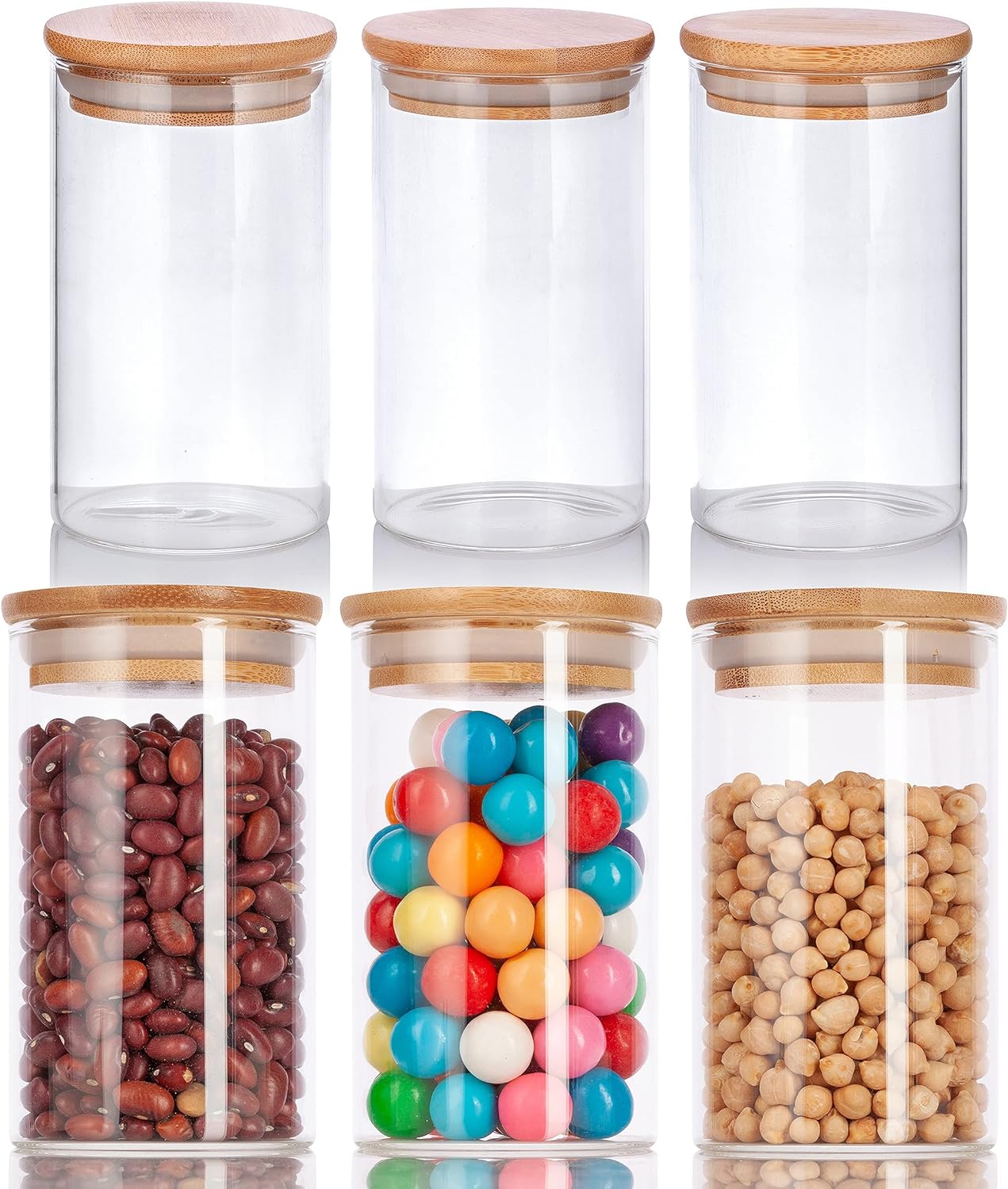 10 oz Clear Glass Tall Borosilicate Jar with Bamboo Lid (6 Pack)