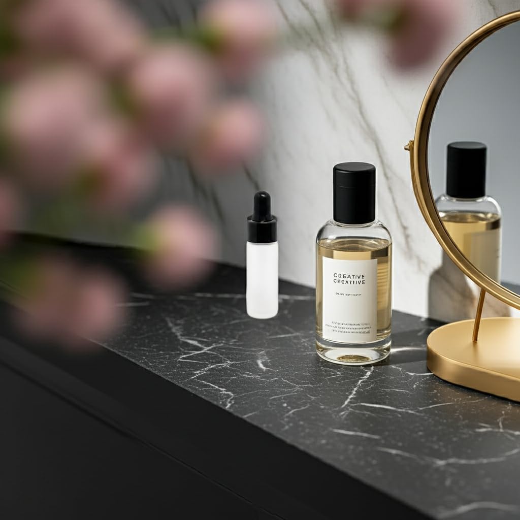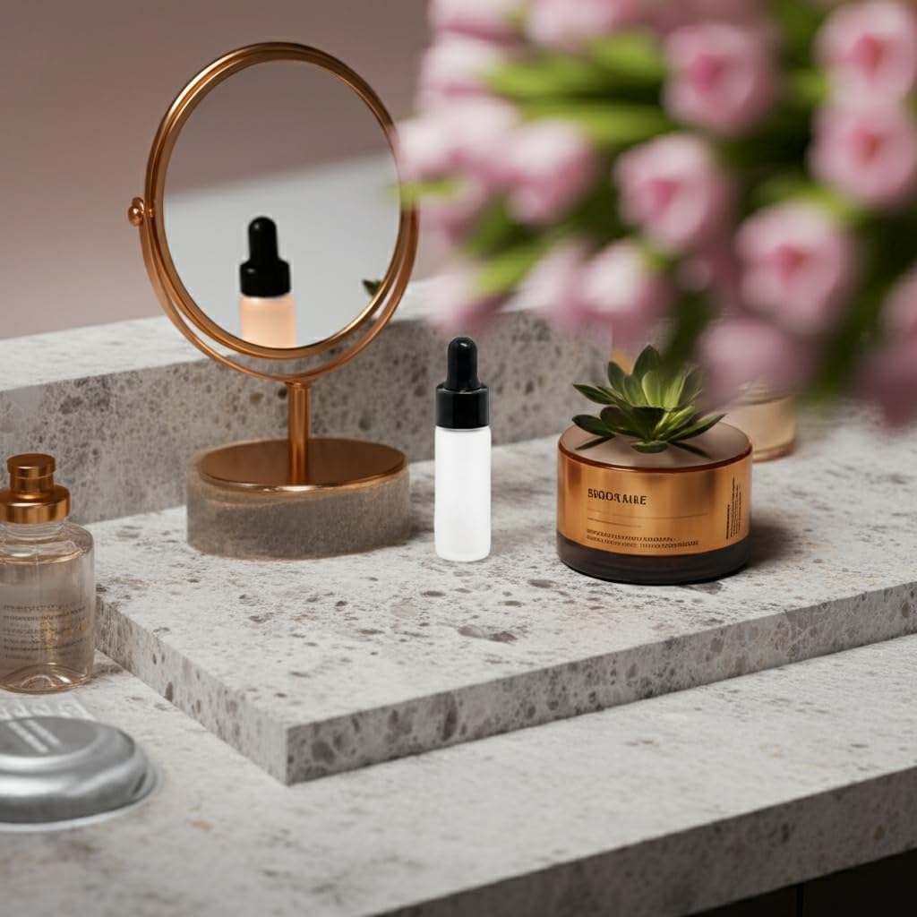 (50 Pack) 5 ml / 0.17 oz Frosted Clear Glass Mini Size Sample Bottle with Black Dropper