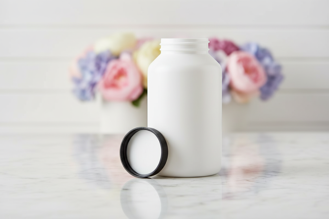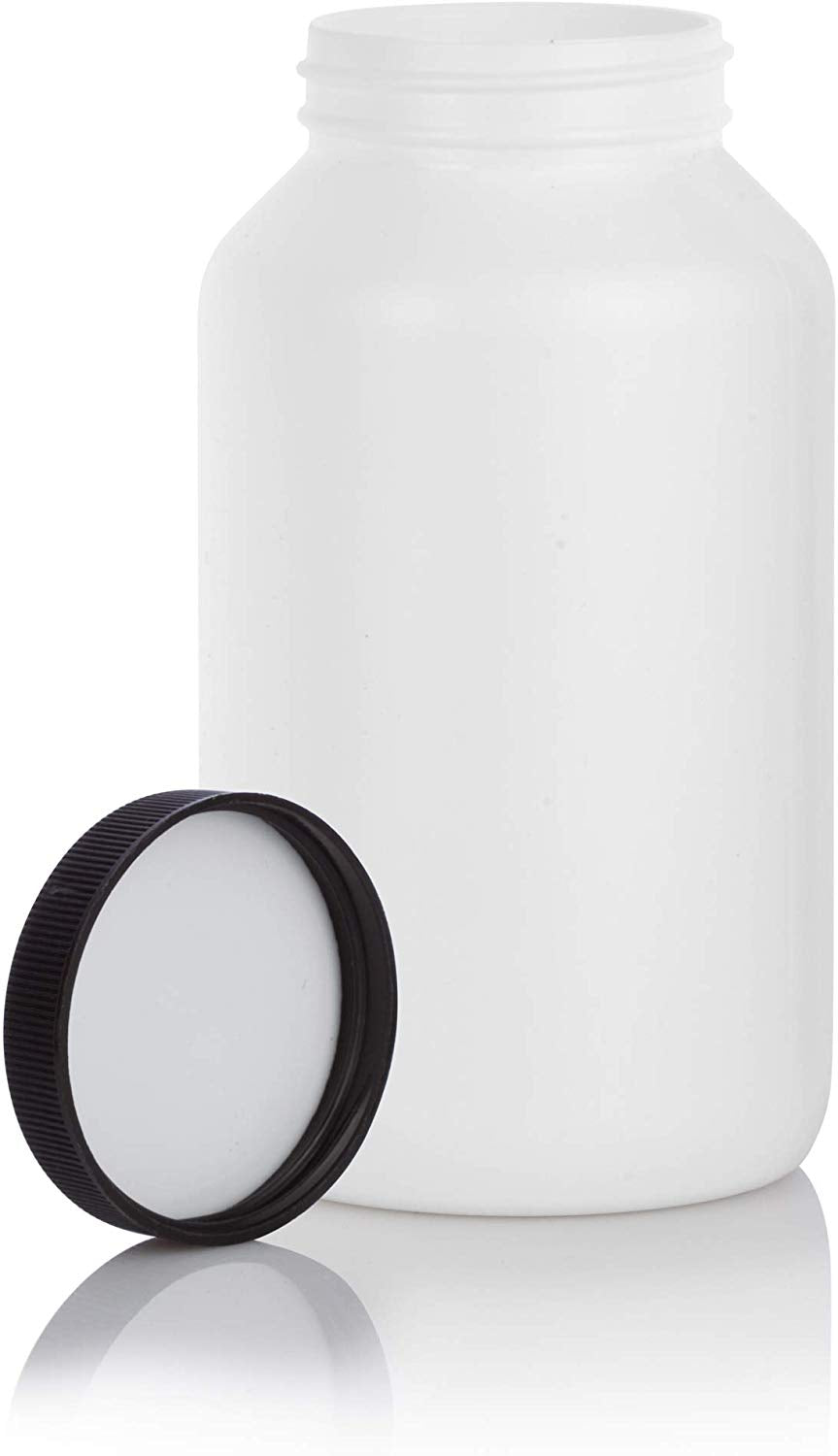 (12 Pack) 5 oz White HDPE Plastic Packer Bottle with Black Ribbed Lid