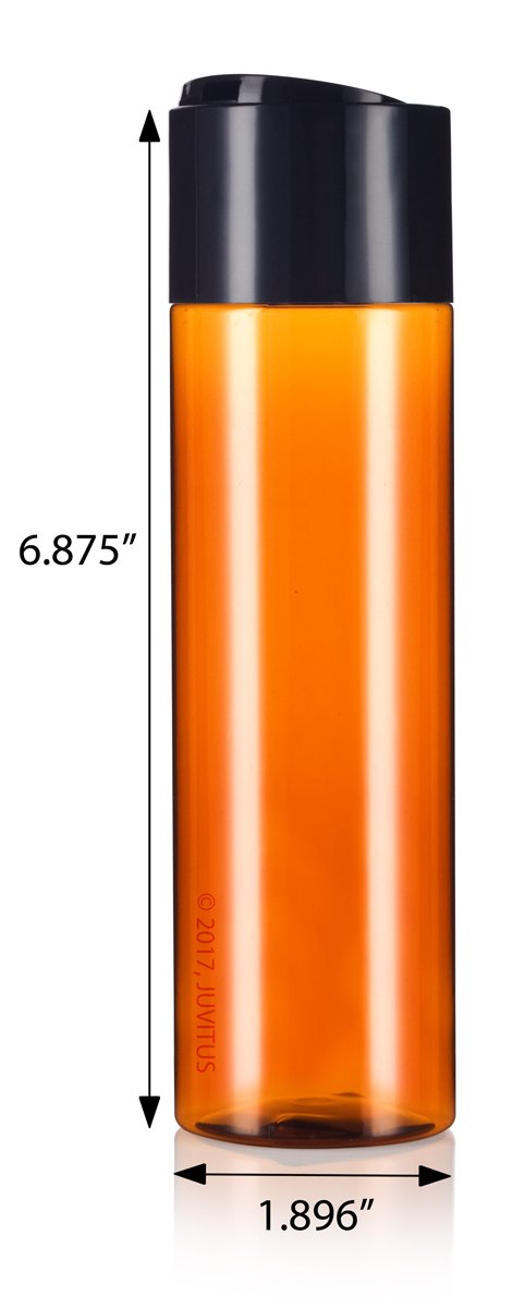 Amber Plastic Professional Cylinder Bottle with Wide Black Disc Cap - 8 oz / 250 ml